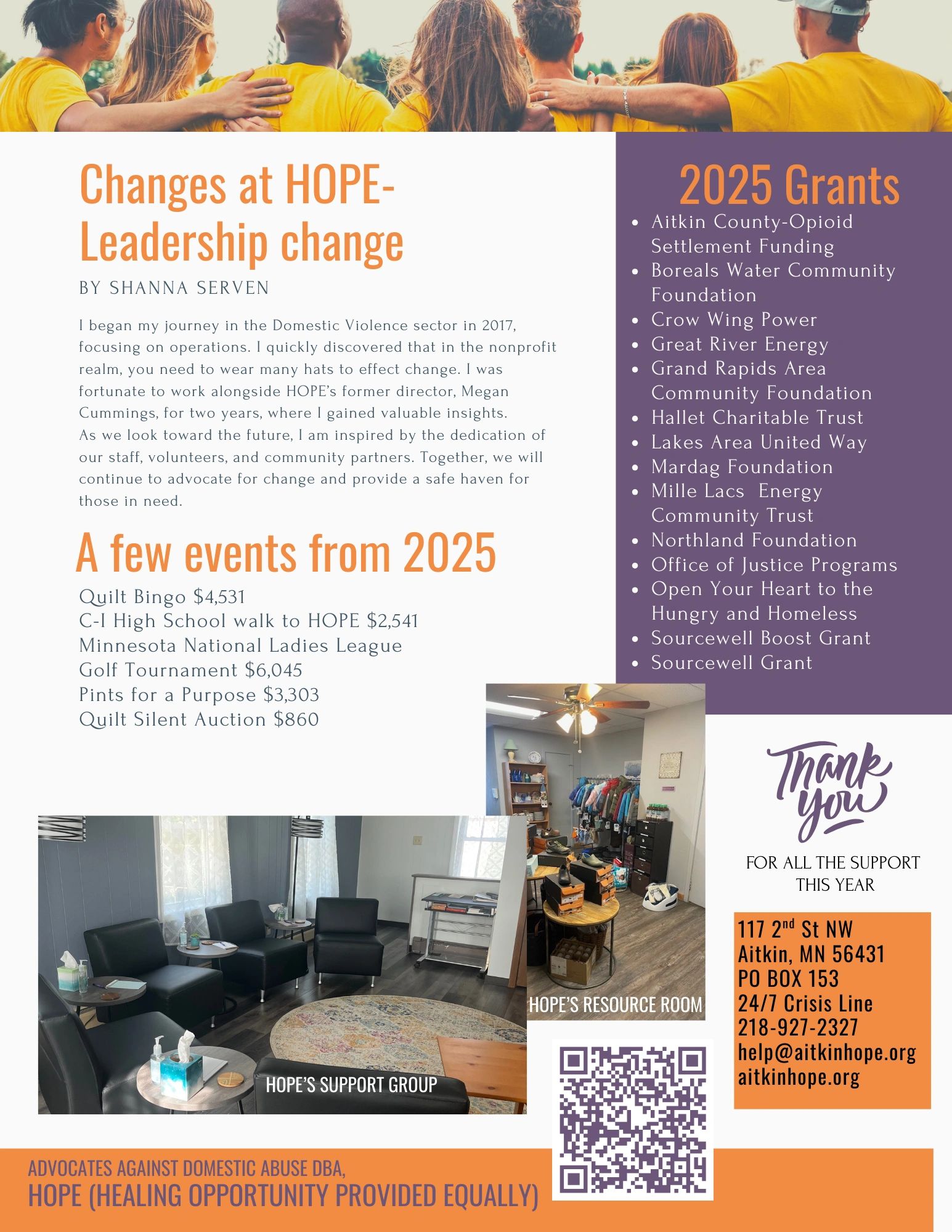 24-Hour Crisis Line 218-927-2327 or 1-888-276-1720